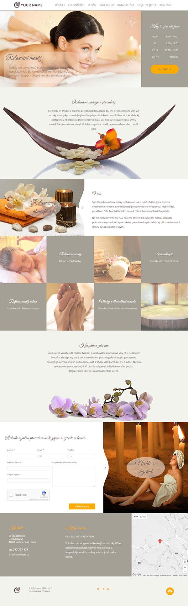 Tuto šablonu využijí ti, kteří nabízí wellness služby, masáže, lázeňské procedury, a firmy, které jsou podobně zaměřené. Elegantní šablona, která bude reprezentovat vaši společnost.